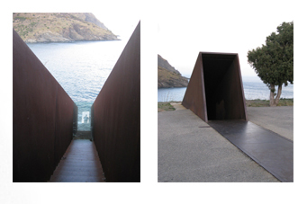 Die Arbeit Karavans in Portbou trägt übrigens den Namen „Passagen“, zurückzuführen auf das unvollendete Werk Benjamins mit dem gleichen Titel, aber auch in einem allgemeinen Sinn von Übergang. Vom Leben zum Tod vielleicht, vom Terror in die Freiheit, zu irgendeinem anderen Ufer. Eine Zwischenwelt, wie die Passagen in Paris, die Benjamin zu seinem letzten Werk animiert hatten, ein Ort der Begegnung von Innenräumen und Außenwelt, an dem die Zeit still zu stehen scheint. Ein Ort der Besinnung und des Friedens, von dem aus man weiter zieht, zu den Aufgaben die das Leben einem auferlegt hat.