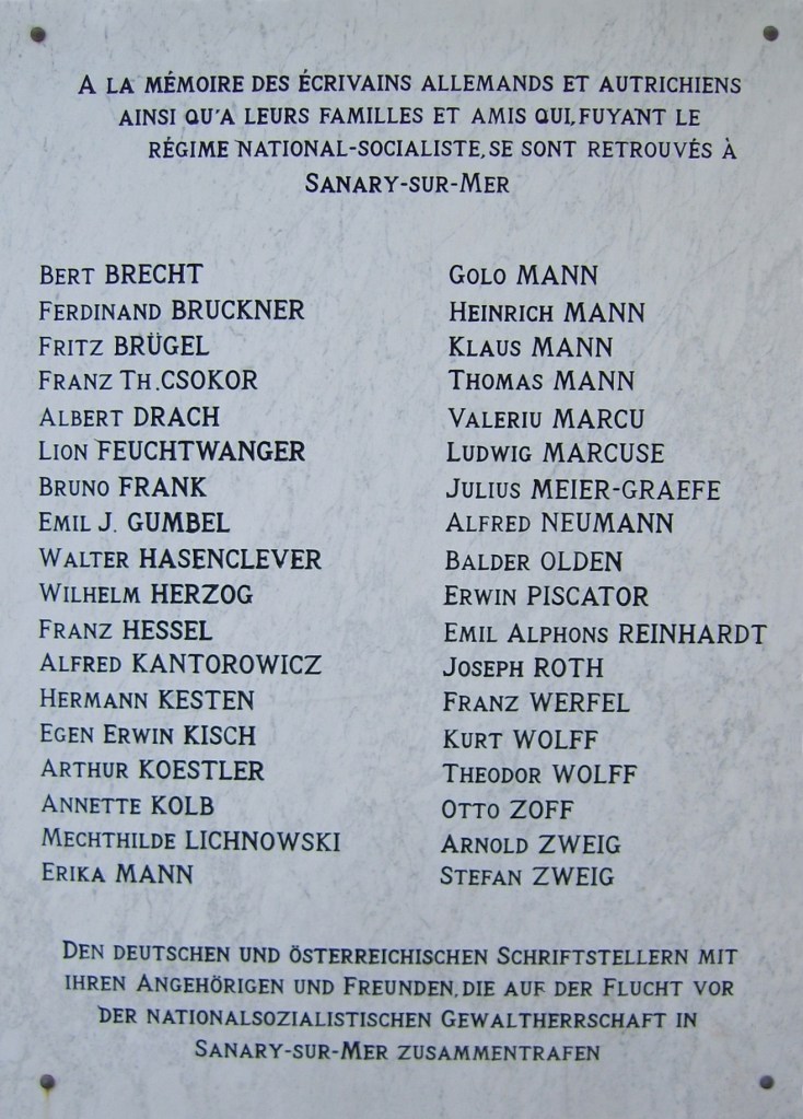 [3] https://commons.wikimedia.org/wiki/File:Gedenktafel_f%C3%BCr_die_deutschen_u._%C3%B6sterreichischen_Fl%C3%BCchtlinge_am_Fremdenverkehrsb%C3%BCro_in_Sanary-sur-Mer1.jpg