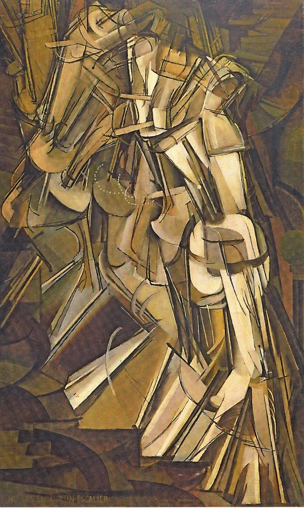 Das Bild stellt blinde Menschen dar, die sich einer am anderen festhalten. In ihrer Blindheit sind sie wohl vom Weg abgekommen, der erste rechts stürzt schon in einen Teich, die anderen drohen ihm zu folgen, der zweite ist ebenfalls schon im Sturz begriffen. Die Reihe der blinden Menschen folgt einer Diagonalen von links oben nach rechts unten, die wir mit unserer abendländischen Art zu lesen, von links nach rechts als fallend wahrnehmen. Es ist die Schilderung einer Bewegung, deren Ablauf sich auf verschiedene Personen verteilt. Eine sehr moderne Bemühung, die mich an ein Bild von Duchamp erinnert. Parallel dazu sieht man eine Kante, die zu einem Abhang zu gehören scheint, die ebenfalls in die gleiche Richtung läuft. So gesehen haben die verirrten Blinden noch Glück gehabt, nicht dorthin geraten zu sein.