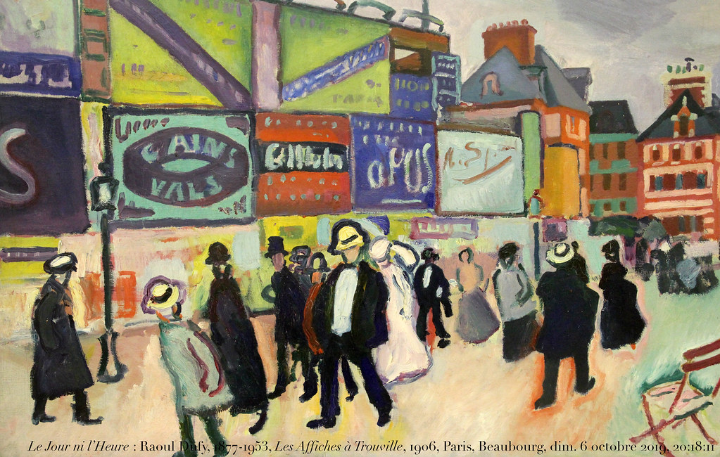 Raoul Dufy (1877 – 1953) wurde nach einem anfänglichen klassischen Kunststudium durch das Bild »Luxe, calme et volupté» von Matisse für den Fauvismus begeistert. Er kam mit Braque und Othon Friesz aus Le Havre und hatte wie die beiden anderen zuvor impressionistisch gearbeitet. Angesichts des fauvistischen Bildes, das noch dem Divisionismus verhaftet war, war er von der Umsetzung von Phantasie in Farbe und Design so überzeugt, dass er den Impressionismus hinter sich ließ.