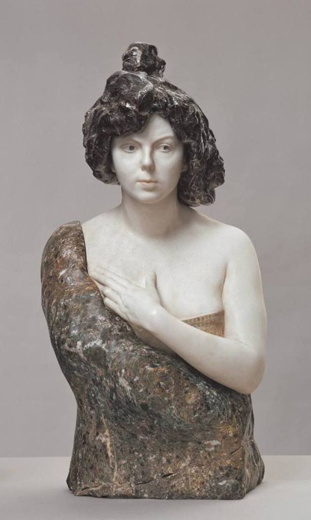 Max Klinger (1857 – 1920) wird schon mit größerem Recht als Symbolist bezeichnet. Er arbeitete mit mehreren Materialien. Mit Marmor empfand der das Wissen um antike Statuen nach, gemäß dem sie ursprünglich farbig waren und die weiße Farbe durch Abnutzung entstand. Farbunterschiede schuf er auch durch die Kombination verschiedener Materialien, wie bei der Büste seines Models und Partnerin Elsa Asenijeff.