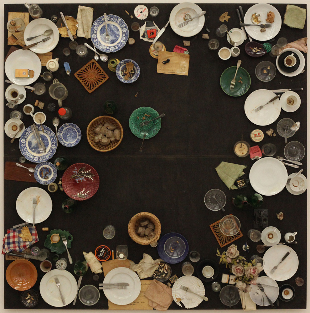 Daniel Spoerri, Hahns Abendmahl (entstand auf  Wunsch des Sammlers Wolfgang Hahn), 1964, museum moderner kunst stiftung ludwig, Wien. Bild: Pavel Flegontov, flickr. (CC BY-NC 2.0