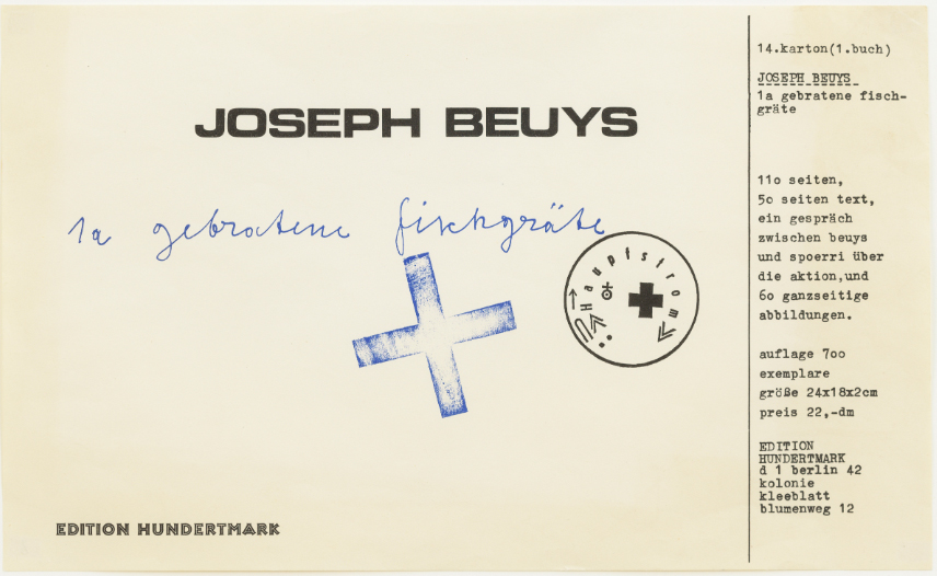Joseph Beuys, Buchumschlag (Das Zertifikat ist auf einem Buchumschlag abgebildet, die recht unansehnlichen Objekte unterliegen dem Urheberrecht).
