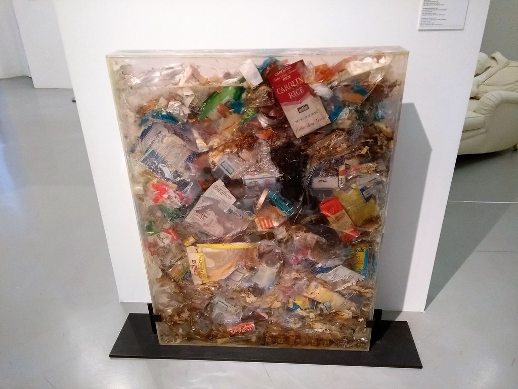 Die grundsätzliche Idee verfolgte er weiter mit einer Serie, die er »Mülleimer« nannte, Abfälle, die er aus Papierkörben sammelte mit der vielleicht albernen, aber nicht uninteressanten Idee, dass die Abfälle einer Person die Essenz ihrer Persönlichkeit zum Vorschein bringen. (Nach Taline Oundijan, 02/2016, Rouge à Lettres, WordPress) Er liebte es, das Publikum zu schockieren und hat nach einigen Aussagen den ansteigenden Konsum kritisieren wollen. Zunächst in Glasbehältern, bereiten die späteren Ausführungen in Kunstharz (»Inklusionen«) keine Konservierungsprobleme mehr. auch »Akkumulationen« wurden eingegossen.