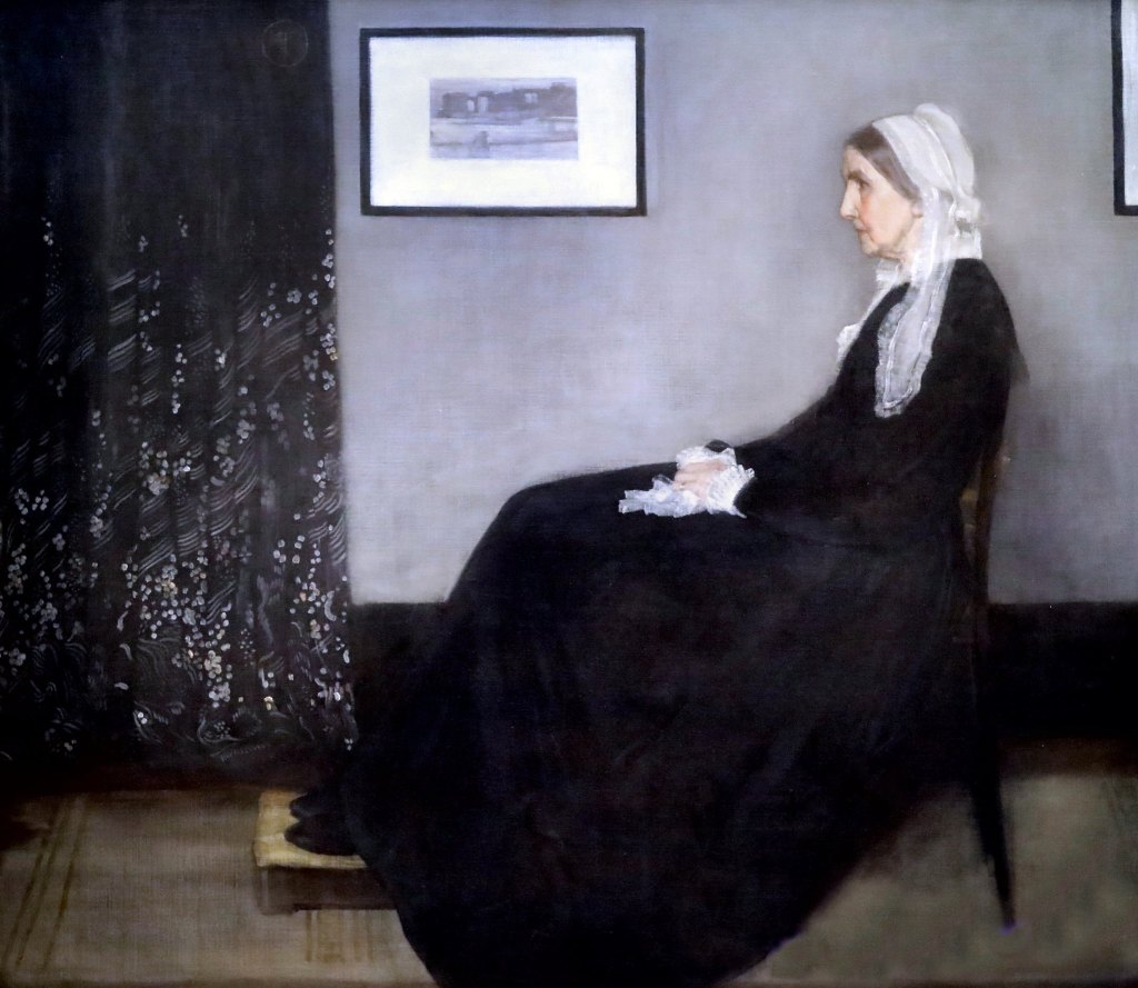 Auffallend bei McNeill Whistler sind die Titel seiner Bilder, in denen er oft die verwendeten Farben benennt, statt den Bildgegenstand. Neben den gezeigten Bildern macht dabei auch das Bildnis seiner Mutter mit dem Titel, Arrangement in Grau und Weiß von 1871 diesen Sachverhalt besonders deutlich.