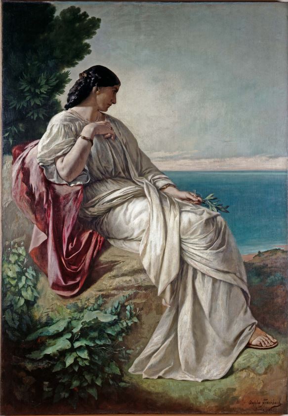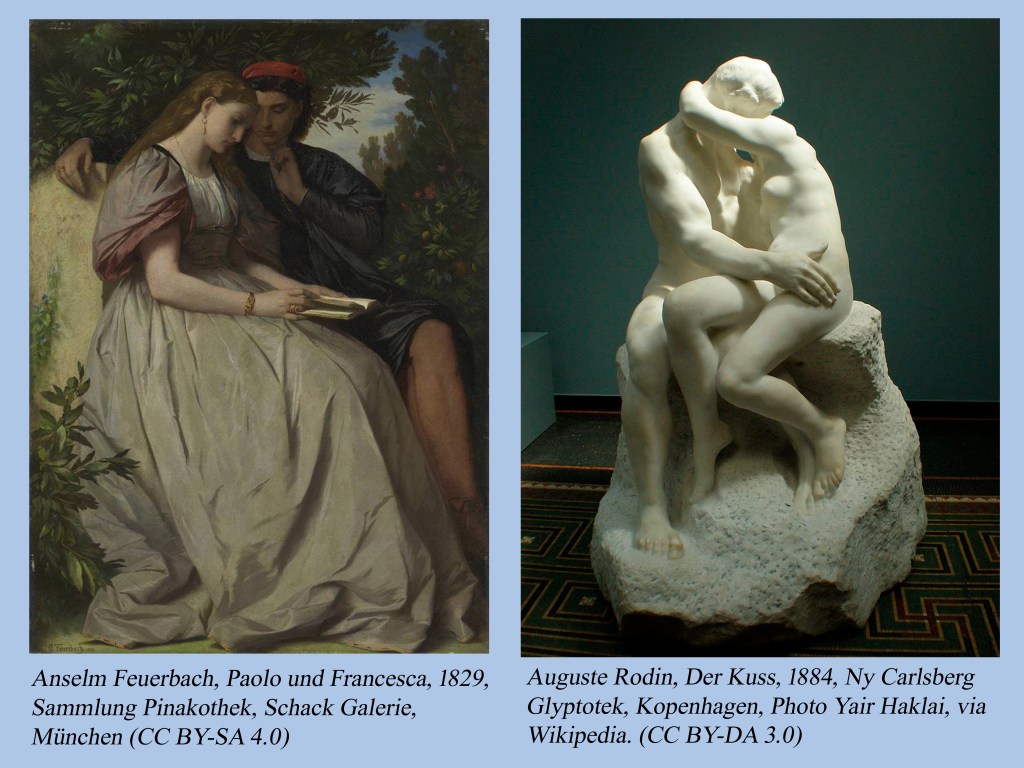 Unter diesen Voraussetzungen wage ich nun auch, den letzten der drei Deutschrömer vorzustellen, den nun gar nicht modern erscheinenden Anselm Feuerbach (1829 – 1880), der als Neoklassizist eingeordnet wird. Obgleich seine Werke durchweg einen gefälligen Eindruck machen und aus heutiger Sicht vielen zusagen würden, hatte seine Farbwahl, die sich zunächst an der venezianischen Farbpracht des 16, Jhd. orientierte, durch die Abtönung dieser Farben durch Grau zu viel Kritik geführt. Inhaltlich sehe ich aber ebenfalls eine Hinwendung zur Vergangenheit bzw. deren Mythen. Bei dem Bild von Paolo und Francesca fällt im Vergleich mit Rodins Plastik desselben Paares von 1884 die Rückständigkeit der Umsetzung ins Auge. Die Vorsilbe „Neo“ ändert nichts an der klassizistischen Ausrichtung Feuerbachs. Kritisieren will ich sein Werk nicht, er war ein phantastischer Künstler, nur unter dem Aspekt „modern“ würde ich ihn im Gegensatz zu Rodin nicht einordnen. Ich erwähne ihn trotzdem, weil die Veränderungen der Moderne auch Menschen überfordern und sie sich nach Vergangenem zurücksehnen. Das Bekannte verspricht weiter Sicherheit, das Neue ist noch ungewiss. Wie bei Böcklin sehe ich den Blick zurück als einen Reflex auf den Fortschritt.