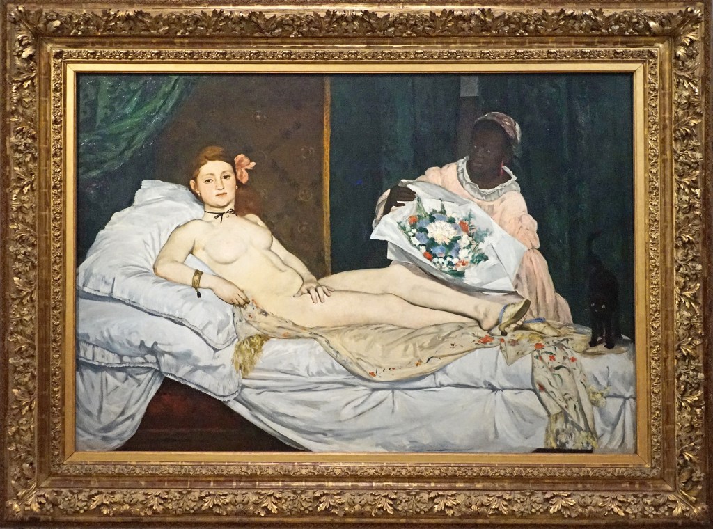Der Skandal des Frühstücks wurde später noch von Manets Olympia übertroffen. Trotz der kunstgeschichtlichen Anlehnung an Tizians Venus von Urbino malte Manet schlicht und einfach eine Prostituierte mit provokativem Blick auf den Betrachter vor ihrer schwarzen Dienerin.