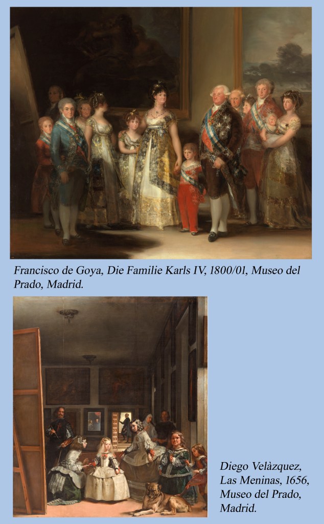 Ein sehr bekanntes und bemerkenswertes Werk ist das Bild »Die Familie Karls IV.« In Anlehnung an das Bild »Las Meninas« seines Vorbildes Velázques fügte er sich links hinten an einem Bild malend selbst mit ein. Umgeben von der Königsfamilie steht Karl IV rechts von der Mitte, während seine Frau in einem prunkvollen Kleid die mittlere Position einnimmt.