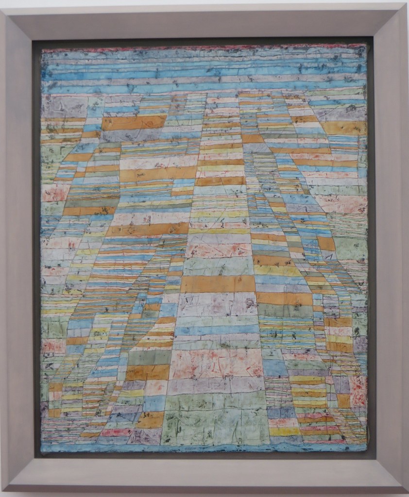 Von hier ist es nur ein kleiner Schritt zu den verschiedenen Werken des Bauhauses, an dem ja auch Paul Klee unterrichtet hatte. Im Design von Textilien, Decken, Gardinen und Kleidungsstücken sind solche Muster eher vertraut und akzeptabel. Die Frage ist dabei sowieso „Wo hört die Kunst auf und wo beginnt das Design?“, die sich übrigens im Bereich der Architektur ebenso stellt. Auch hier mag jede(r) eine eigene Antwort finden.
